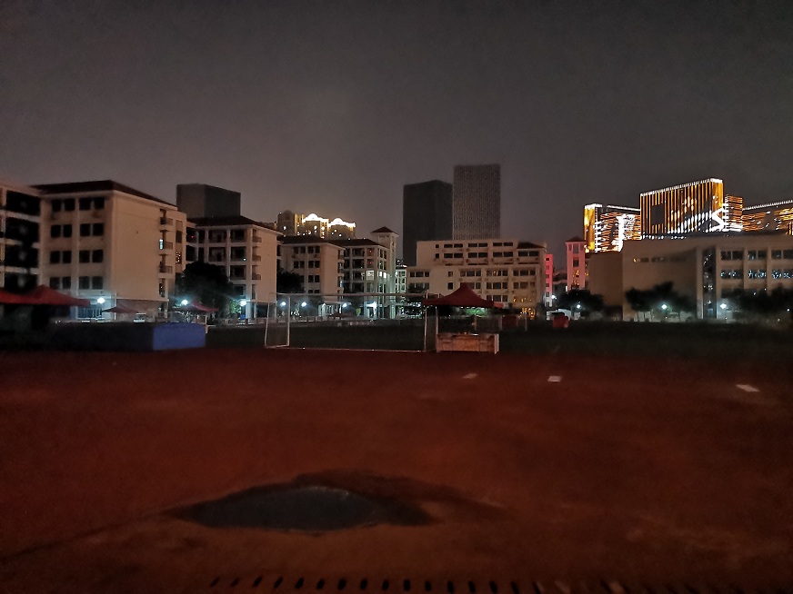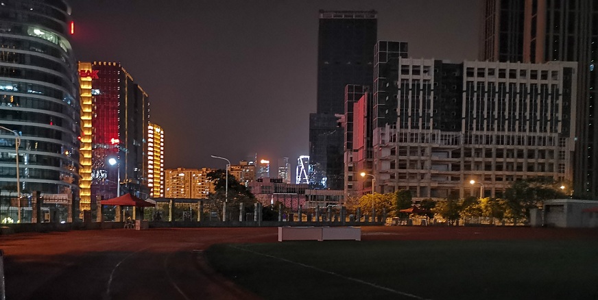 由于本次比賽在學校的操場舉辦,所以工作人員只能等到學校清場后才能進來布場。觀音山片區(qū)美輪美奐的夜景為乏味又冗長的工作現(xiàn)場添上了一些樂趣。