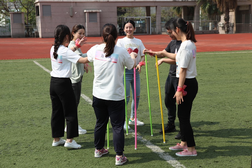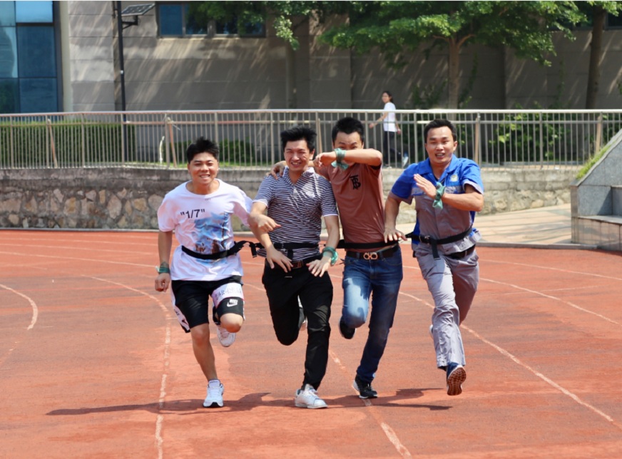 各隊的側重點各不相同。有的隊伍提前排兵布陣,并在關鍵時刻改變戰(zhàn)略,穩(wěn)中求勝。有的隊伍本著勇往直前的硬漢作風,風風火火的殺出一條血路。當然其中也不乏嬌俏可人的娘子軍們,巾幗不讓須眉,在團隊配合上力挽狂瀾。當然也有的隊伍玩得很盡興,熱門項目“旱地龍舟”“無敵風火輪”“不倒森林”“同心擊鼓”“合力建塔”“袋鼠跳跳跳”統(tǒng)統(tǒng)不落下。