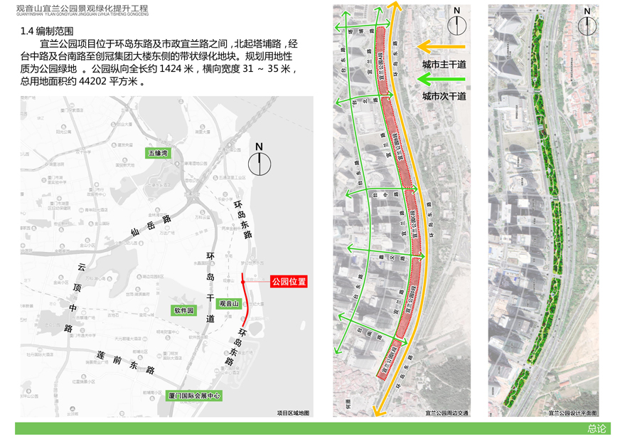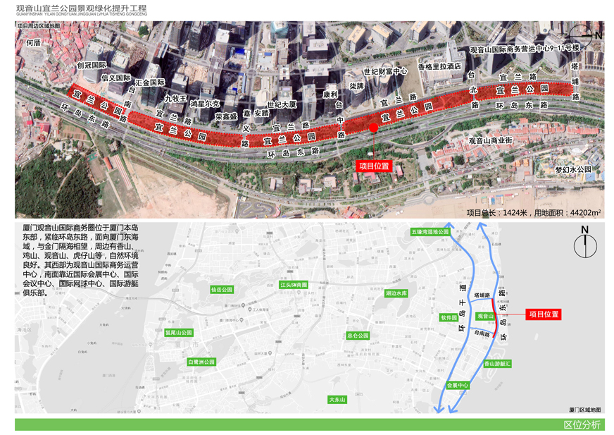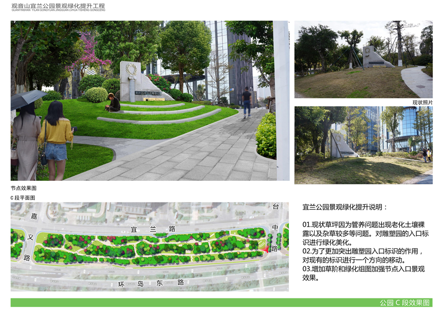 為切實改善上述問題,提升觀音山片區(qū)辦公環(huán)境檔次,廈門市開元國有投資集團有限公司擬對觀音山宜蘭公園進行綠化提升,并委托廈門市城邦園林規(guī)劃設(shè)計研究院有限公司進行了方案設(shè)計。根據(jù)廈府辦[2019]115號文要求,現(xiàn)將設(shè)計方案予以公布并廣泛征求意見。