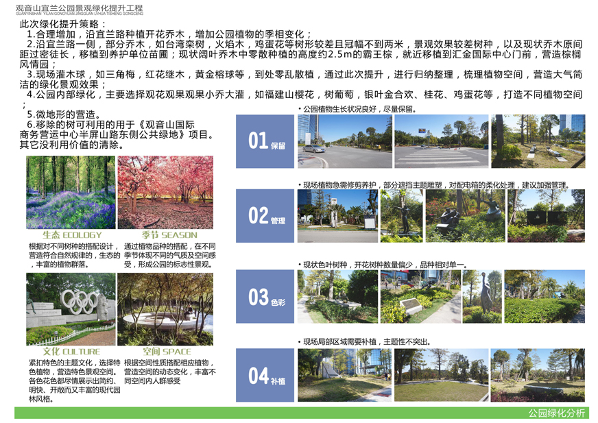 具體內(nèi)容詳見附件:《觀音山宜蘭公園景觀綠化提升工程設(shè)計方案》