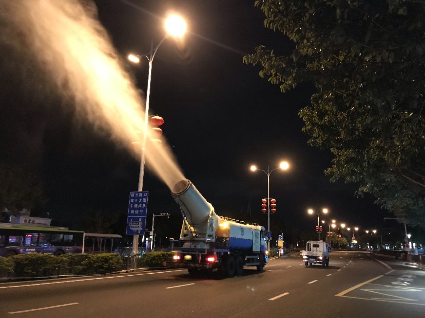 與此同時,公司組建起消殺隊伍,配備噴壺、噴霧器、84消毒液、一次性雨衣等相關(guān)用品,在進行作業(yè)培訓(xùn)后,對重點酒店、公廁、垃圾桶、下水道、車場、作業(yè)車輛、市場、集體宿舍等重點區(qū)域、環(huán)節(jié)按照標準規(guī)范,認真仔細進行消殺,不放過死角和盲區(qū)。公司對重點區(qū)域的消毒消殺每日確保做到兩次以上,為市民筑起一道防疫“保護墻”。2月16日,公司還組織五百多名消殺人員,出動4部霧炮車、2部灑水車參與全市防控疫情愛國衛(wèi)生統(tǒng)一行動,對重點區(qū)域、主次干道進行消殺。