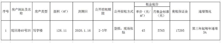 軟件園二期觀日路40號(hào)3N房產(chǎn)招租情況表