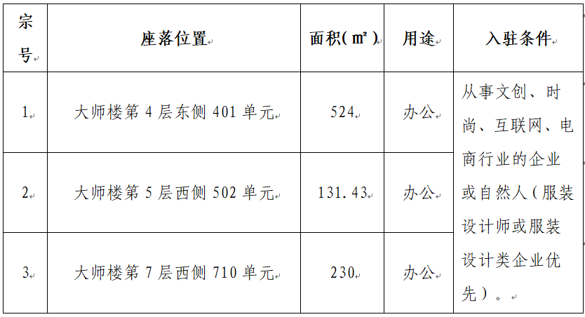 根據(jù)國(guó)有企業(yè)資產(chǎn)出租管理相關(guān)制度,我司決定對(duì)位于龍昌路12號(hào)嘉蓮商務(wù)中心大師樓下列3宗房產(chǎn)對(duì)符合入駐條件的意向承租人進(jìn)行公開競(jìng)價(jià)招租,具體信息如下: