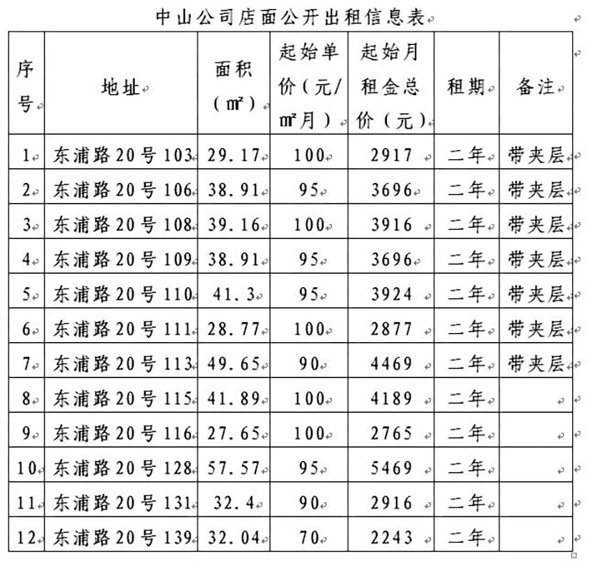 備注:意向承租人參加投標前應對以上店面招租情況有充分了解并可以實地踏勘。詳細招租規(guī)則、房屋租賃合同樣本、承諾函、報價單等招租文件可聯(lián)系招租人領取。