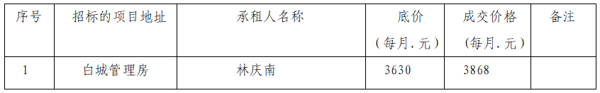 白城管理房公開中標(biāo)公示