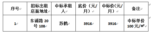 浦南安置小區(qū)東浦路20號103等12間店面公開招租結(jié)果公告