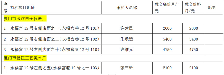 思明區(qū)區(qū)屬托管企業(yè)公開(kāi)招租成交公告