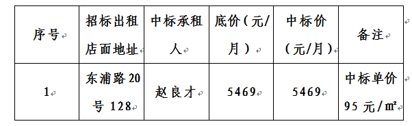 浦南安置小區(qū)東浦路20號(hào)103等12間店面公開招租結(jié)果公告
