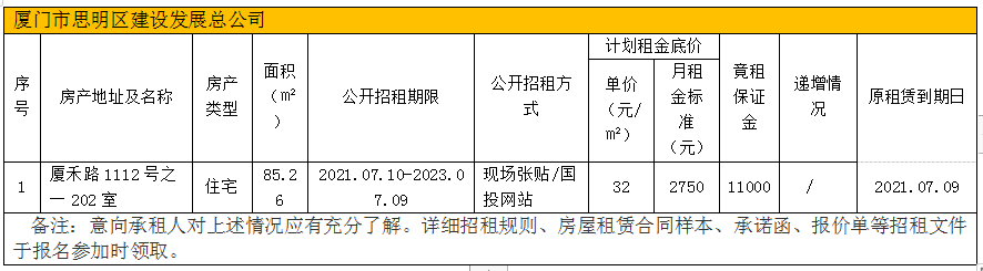 思明區(qū)屬托管企業(yè)擬出租房產(chǎn)招租公告