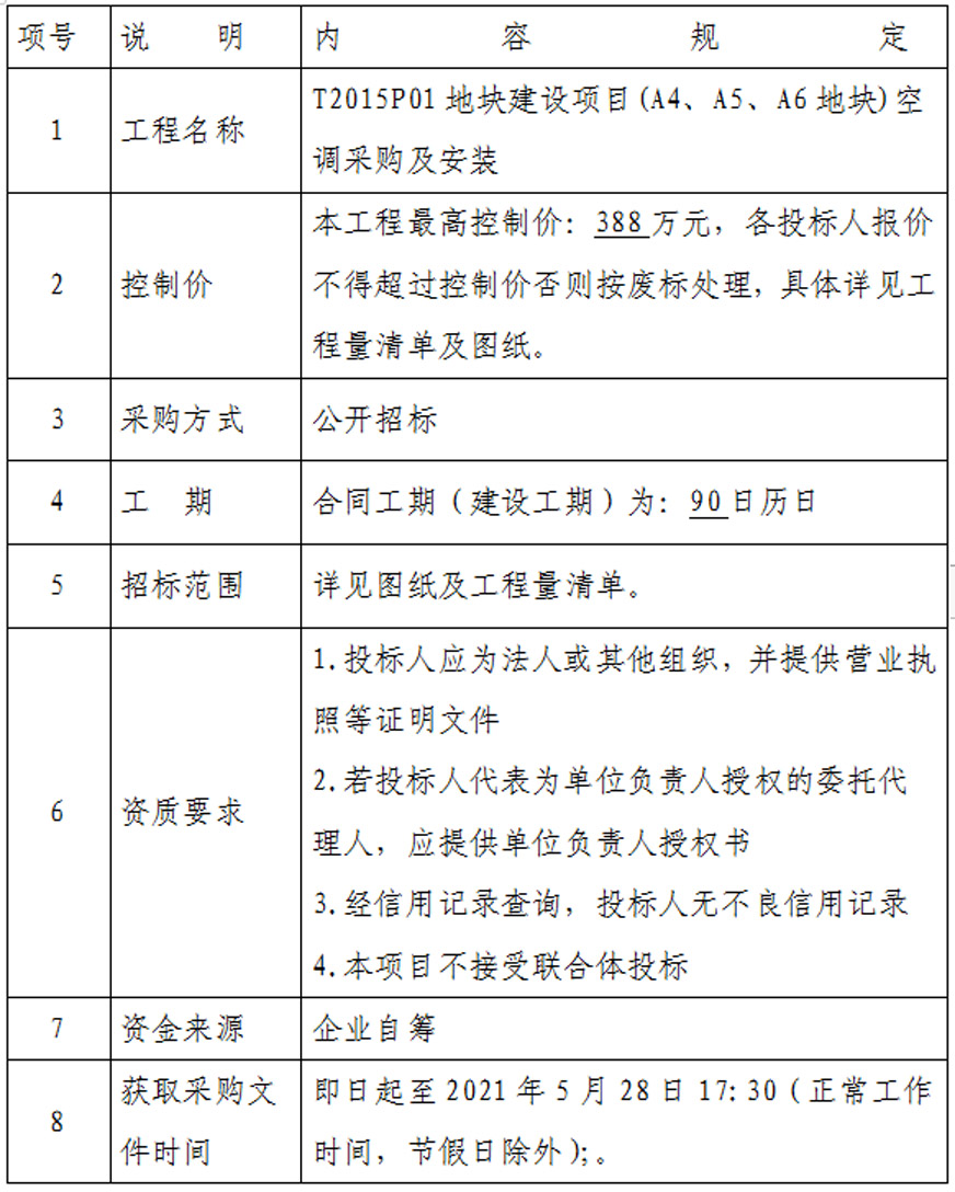 T2015P01地塊建設(shè)項(xiàng)目(A4、A5、A6地塊)空調(diào)采購(gòu)及安裝