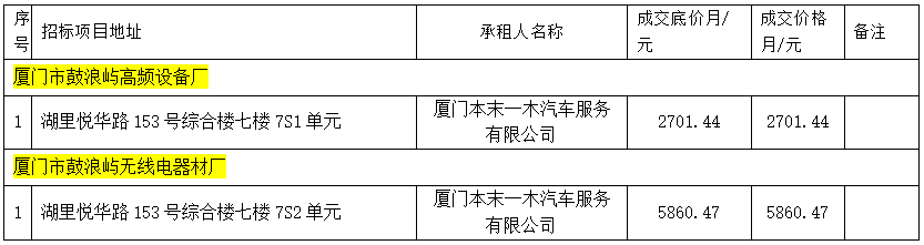 思明區(qū)區(qū)屬托管企業(yè)公開(kāi)招租成交公告