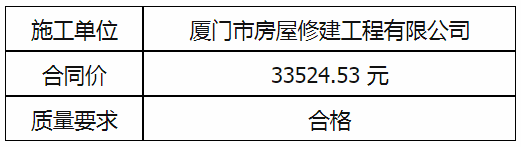 根據(jù)招投標(biāo)管理辦法、思明控股辦[2021]14號文《采購招標(biāo)管理辦法》的相關(guān)規(guī)定,我廠負(fù)責(zé)故宮路95號室外雨水管拆除及新管安裝工程直接發(fā)包廈門市房屋修建工程有限公司實(shí)施,現(xiàn)通過思明控股網(wǎng)站于2021年12月 日至2021年12月 日進(jìn)行成交結(jié)果公示,內(nèi)容如下: