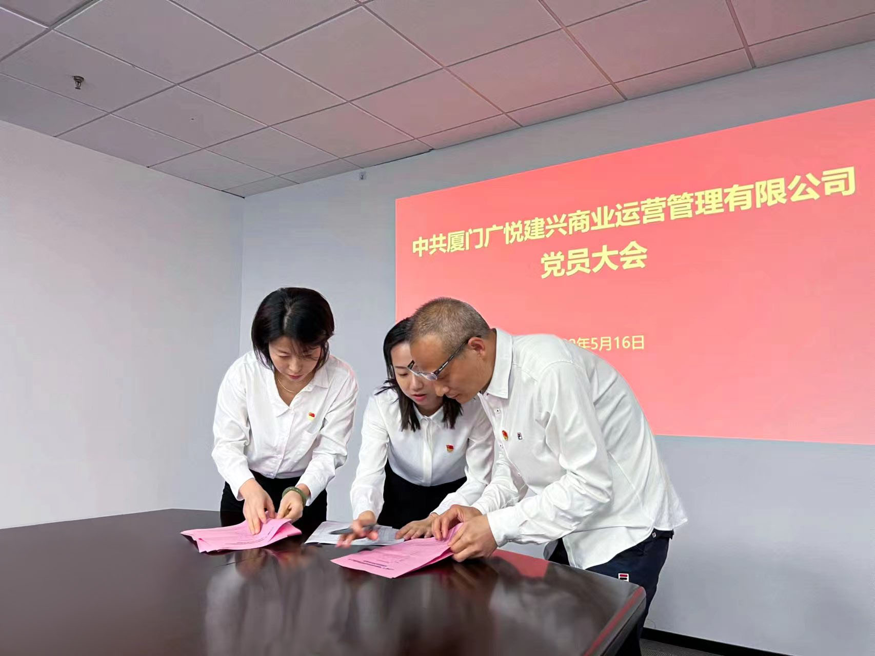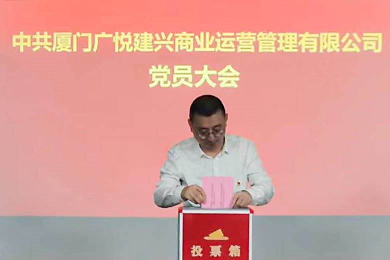 會議在莊嚴(yán)的國歌聲中開始,思明控股黨委辦公室主任傅雅琳宣讀了《關(guān)于同意成立中共廈門廣悅建興商業(yè)運營管理有限公司支部委員會的批復(fù)》。會議以無記名投票、差額選舉的方式,選舉產(chǎn)生廣悅建興黨支部第一屆支委會委員。隨后,在第一次支委會上選舉并分工,黃海同志任廣悅建興黨支部書記、顏海聰同志任副書記,王小銘同志任組織委員兼紀(jì)檢委員。