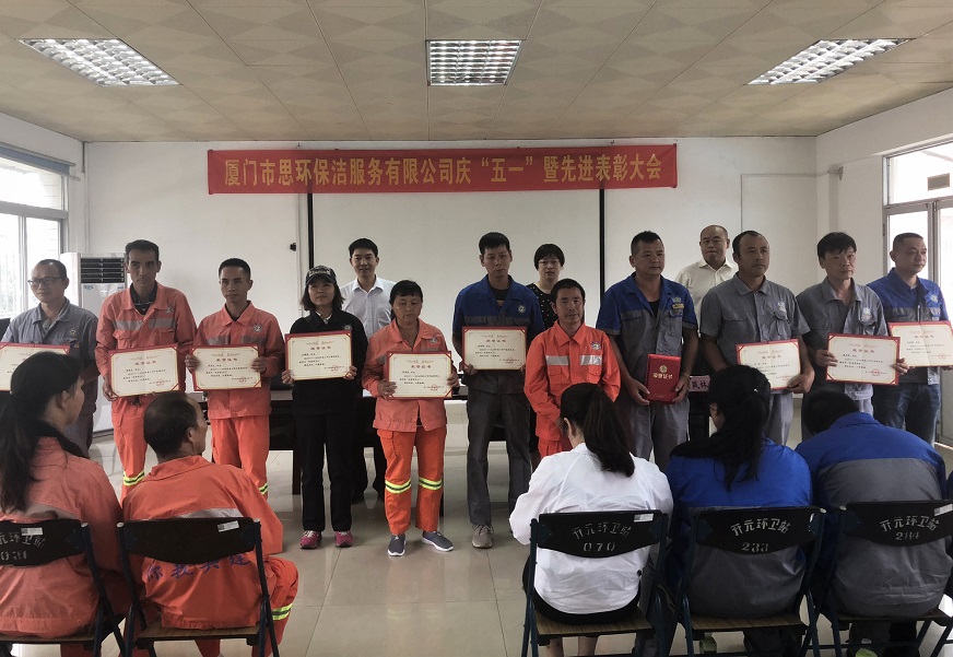 據(jù)悉,思環(huán)公司國(guó)企化管養(yǎng)的一年多以來,全體員工立足本職、齊心協(xié)力,全力做好思明區(qū)市容環(huán)境衛(wèi)生保潔工作,涌現(xiàn)出了一批先進(jìn)個(gè)人和集體。為此,公司在“五一”國(guó)際勞動(dòng)節(jié)到來之際,評(píng)選出31名優(yōu)秀環(huán)衛(wèi)人、4名優(yōu)秀管理者及3個(gè)優(yōu)秀管理團(tuán)隊(duì),并召開大會(huì)予以表彰獎(jiǎng)勵(lì)。當(dāng)日,全和集團(tuán)黨總支副書記林荔菡、思環(huán)公司總經(jīng)理白政和、副總經(jīng)理?xiàng)铠P林出席會(huì)議,為獲獎(jiǎng)人員頒發(fā)了榮譽(yù)證書。領(lǐng)獎(jiǎng)過后,陳清明等4名代表先后上臺(tái)發(fā)言。