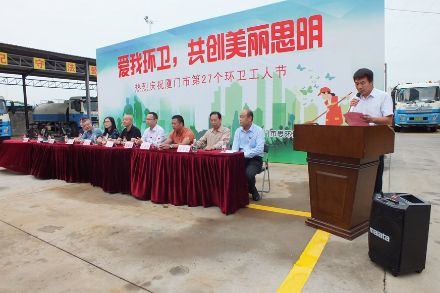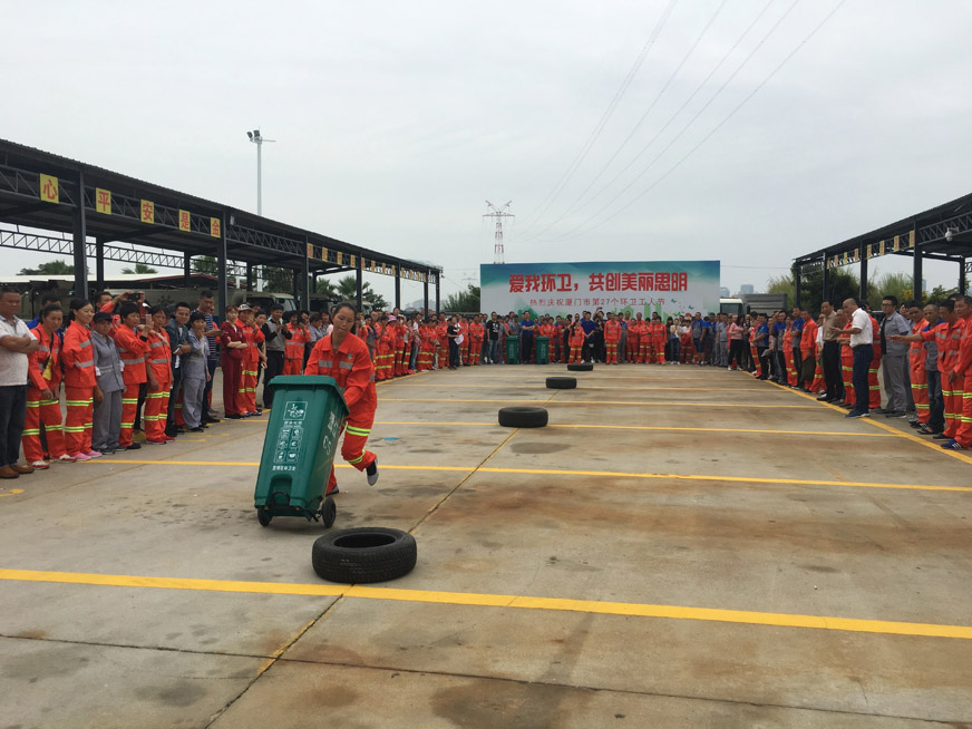 今年10月26日,是廈門市第27個環(huán)衛(wèi)工人節(jié)。為了慶祝這個節(jié)日,10月24日,思環(huán)公司組織開展了以“愛我環(huán)衛(wèi) 共創(chuàng)美麗思明”為主題的崗位技能競賽暨趣味運動會。集團(tuán)公司領(lǐng)導(dǎo)與市、區(qū)行業(yè)主管部門有關(guān)領(lǐng)導(dǎo)蒞臨活動現(xiàn)場,與大家共慶佳節(jié)。公司轄區(qū)內(nèi)環(huán)衛(wèi)所、車隊的數(shù)百名環(huán)衛(wèi)工組成12支代表隊參與活動。