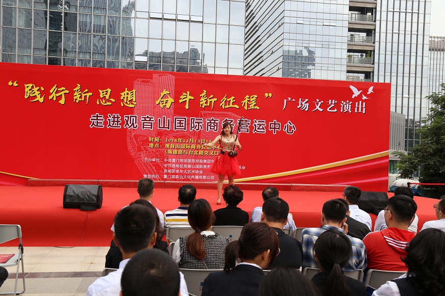 為深入學(xué)習(xí)貫徹習(xí)近平新時代中國特色社會主義思想,激勵園區(qū)企業(yè)以更加飽滿的精神風(fēng)貌,慶祝改革開放40周年,接續(xù)奮斗,11月13日下午,由思明控股集團黨委聯(lián)合觀音山黨工委、思明區(qū)老年人藝術(shù)協(xié)會共同舉辦“踐行新思想,奮斗新征程” ——學(xué)習(xí)習(xí)近平新時代中國特色社會主義思想廣場文藝演出。